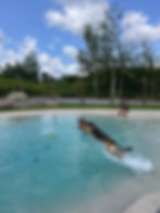 Nous avons un nouveau parc de jeu où les chiens peuvent se baigner comme à la plage.